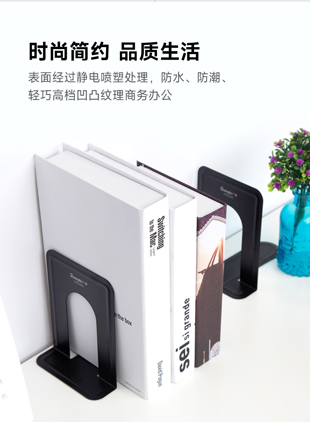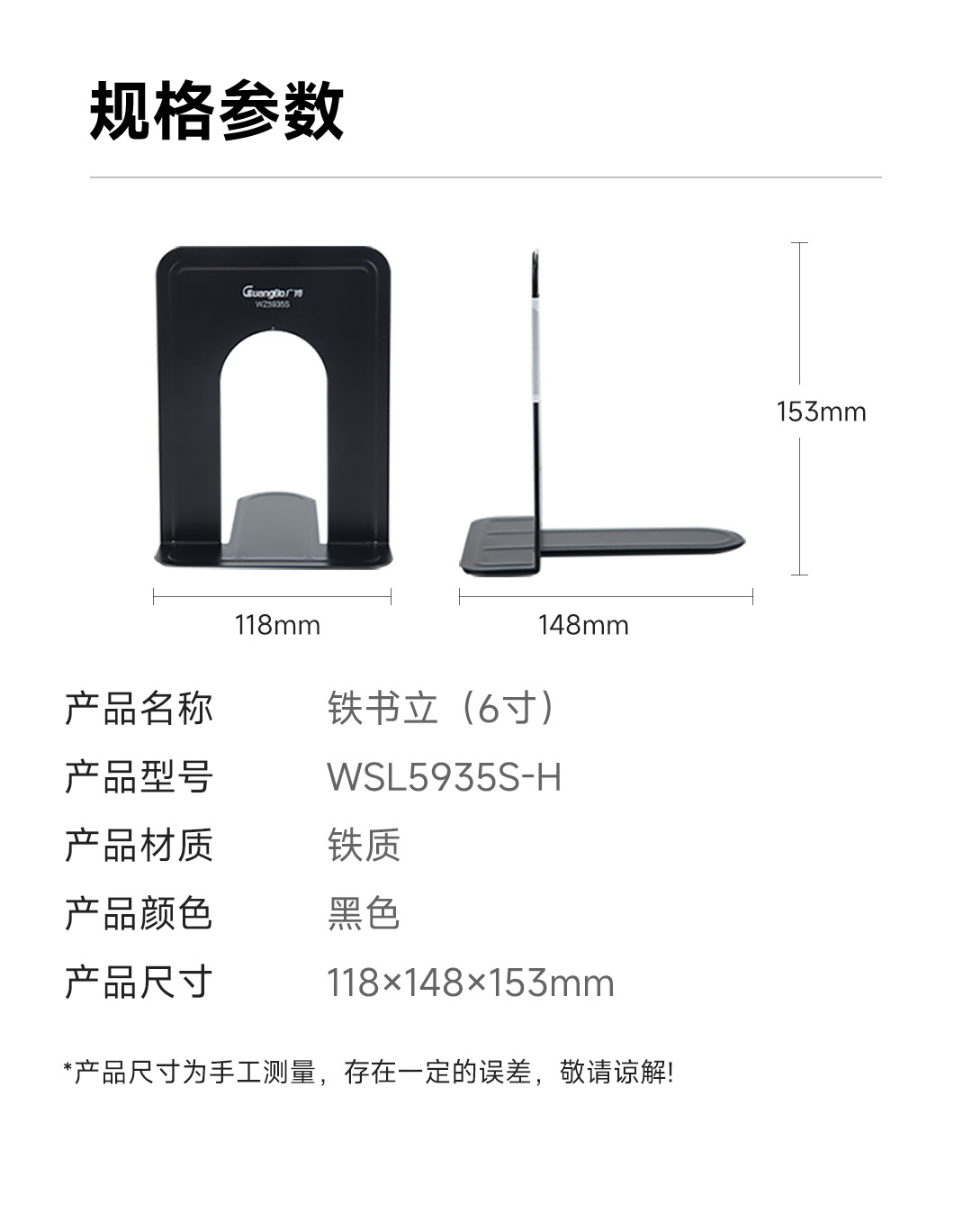 广博金属铁书立6英寸 黑色1对
