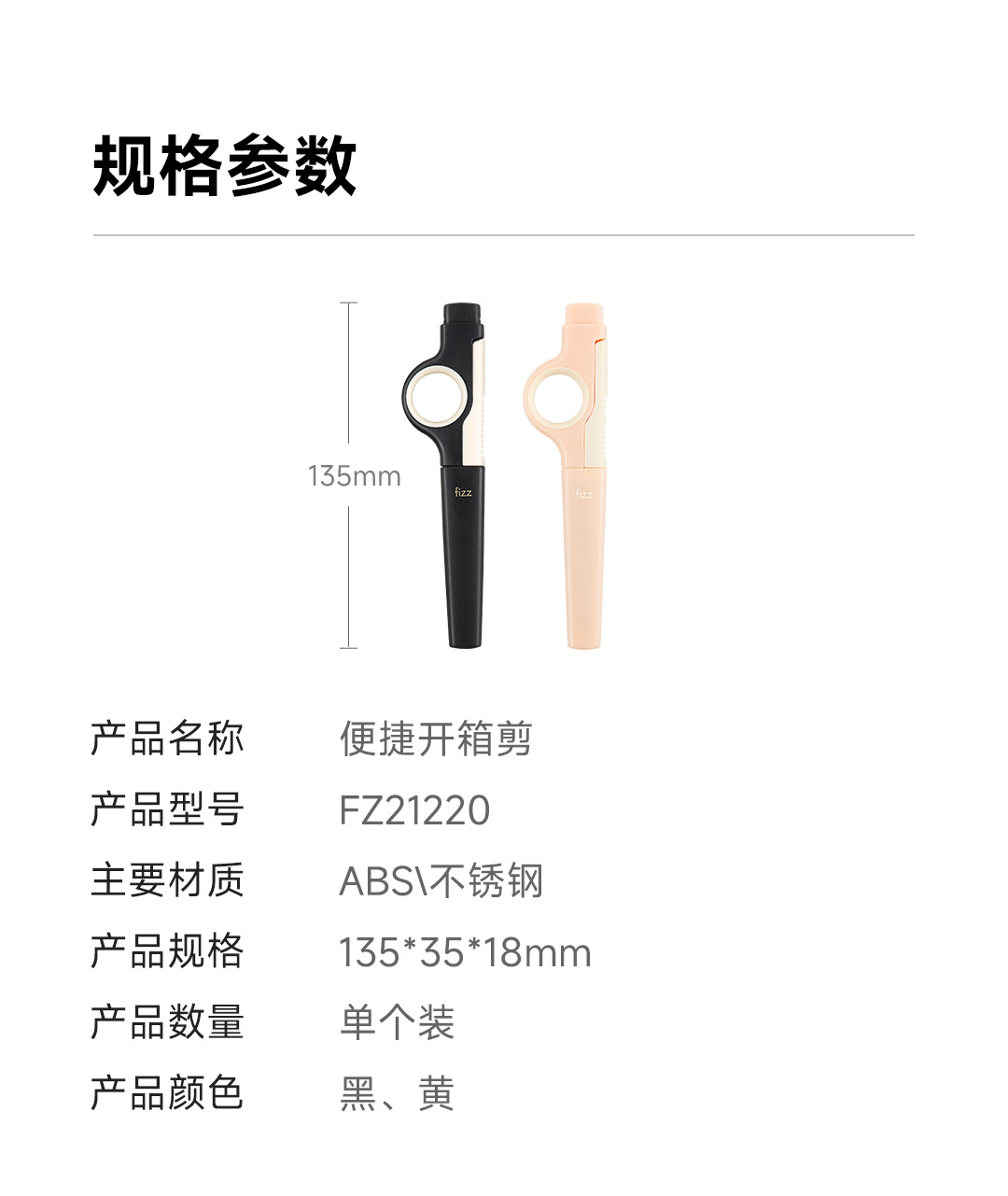 飞兹(fizz)便携开箱剪刀 黑色