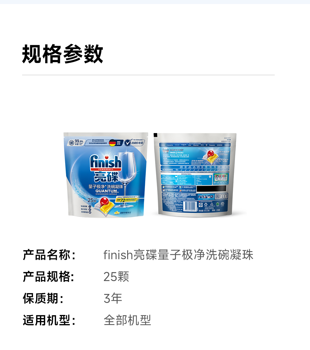 finish亮碟 量子极净洗碗凝珠洗碗机耗材 洗碗凝珠25颗(25颗*1袋)